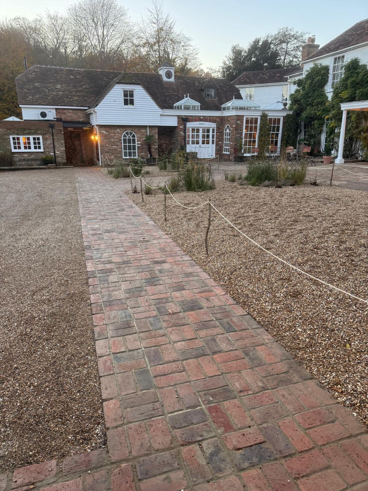 Warm brick tones and gravel textures suit the character of the property and age well over time.