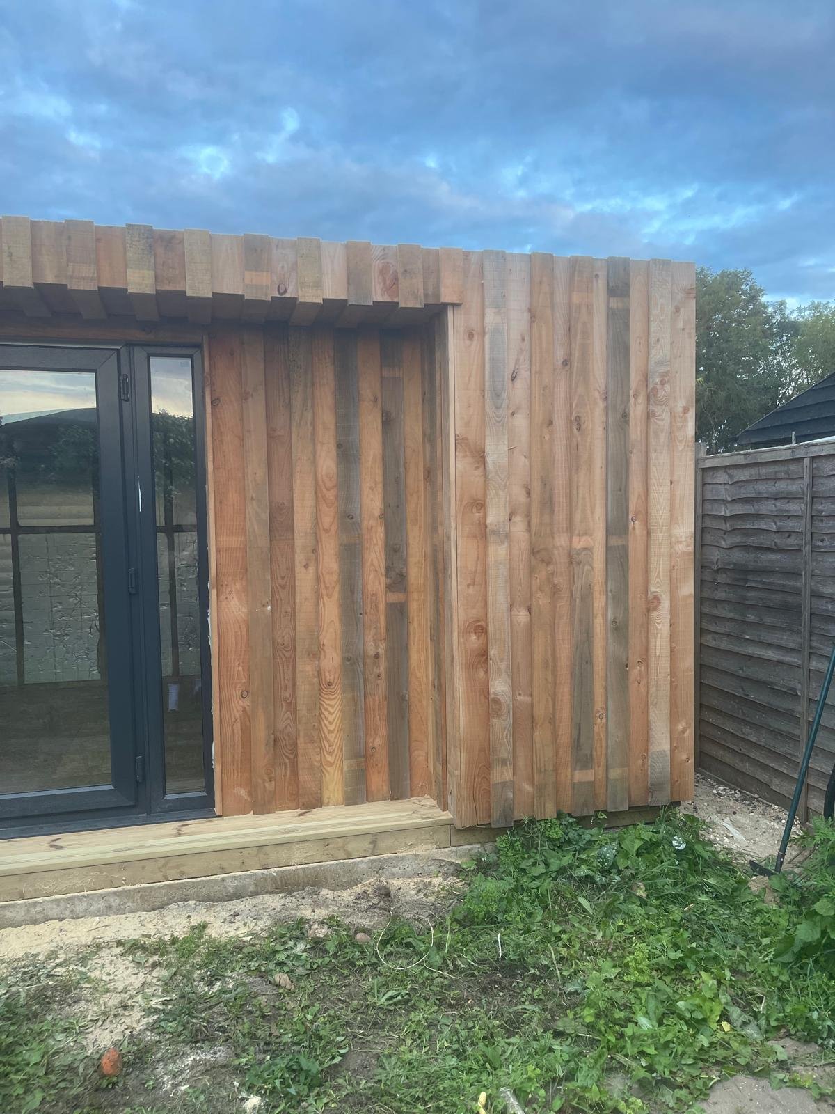 A compact garden room with clean timber cladding, crisp lines, and a simple outdoor approach.